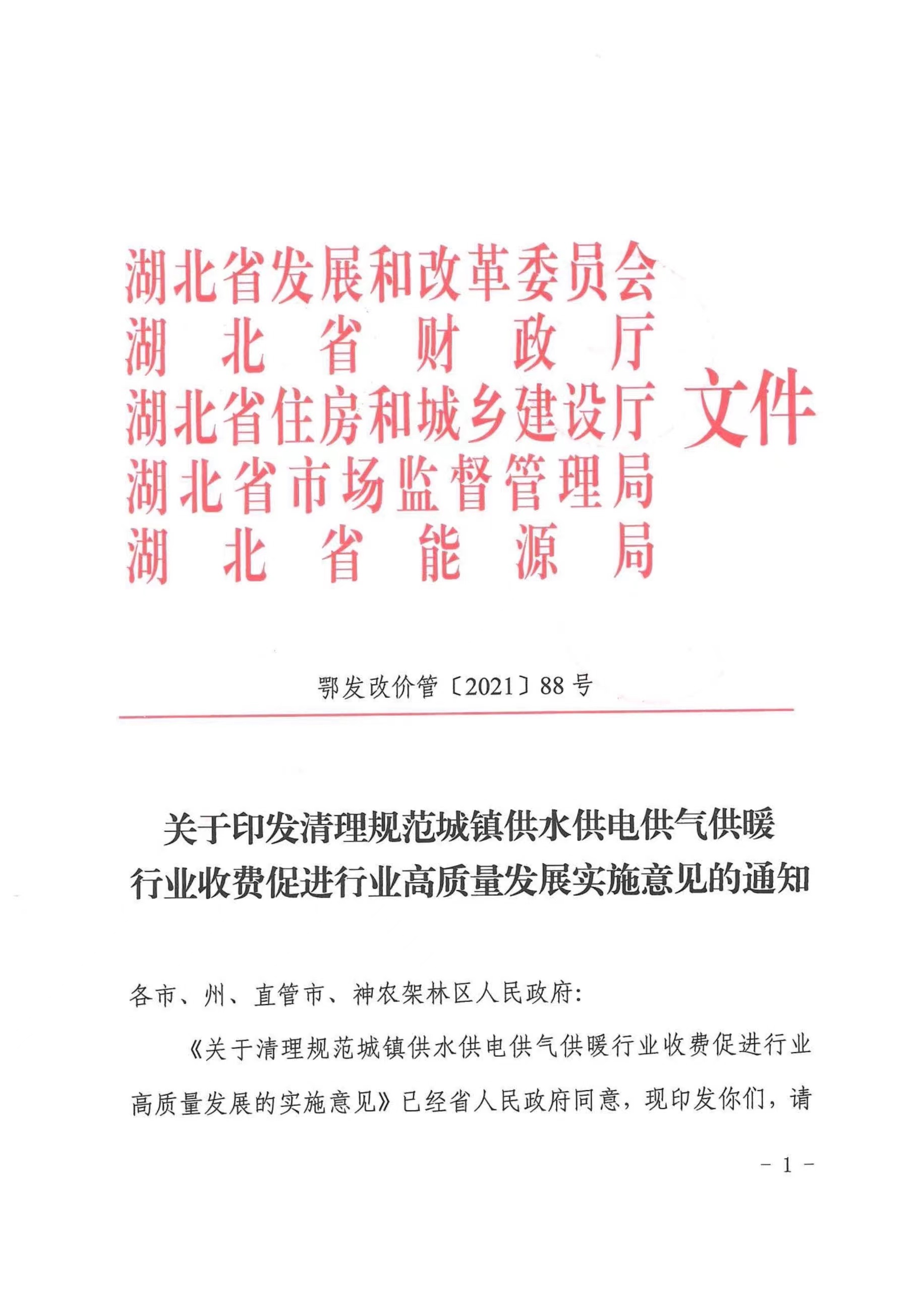 關(guān)于印發(fā)清理規(guī)范城鎮(zhèn)供水供電供氣供暖行業(yè)收費(fèi)促進(jìn)行業(yè)高質(zhì)量發(fā)展實(shí)施意見的通知